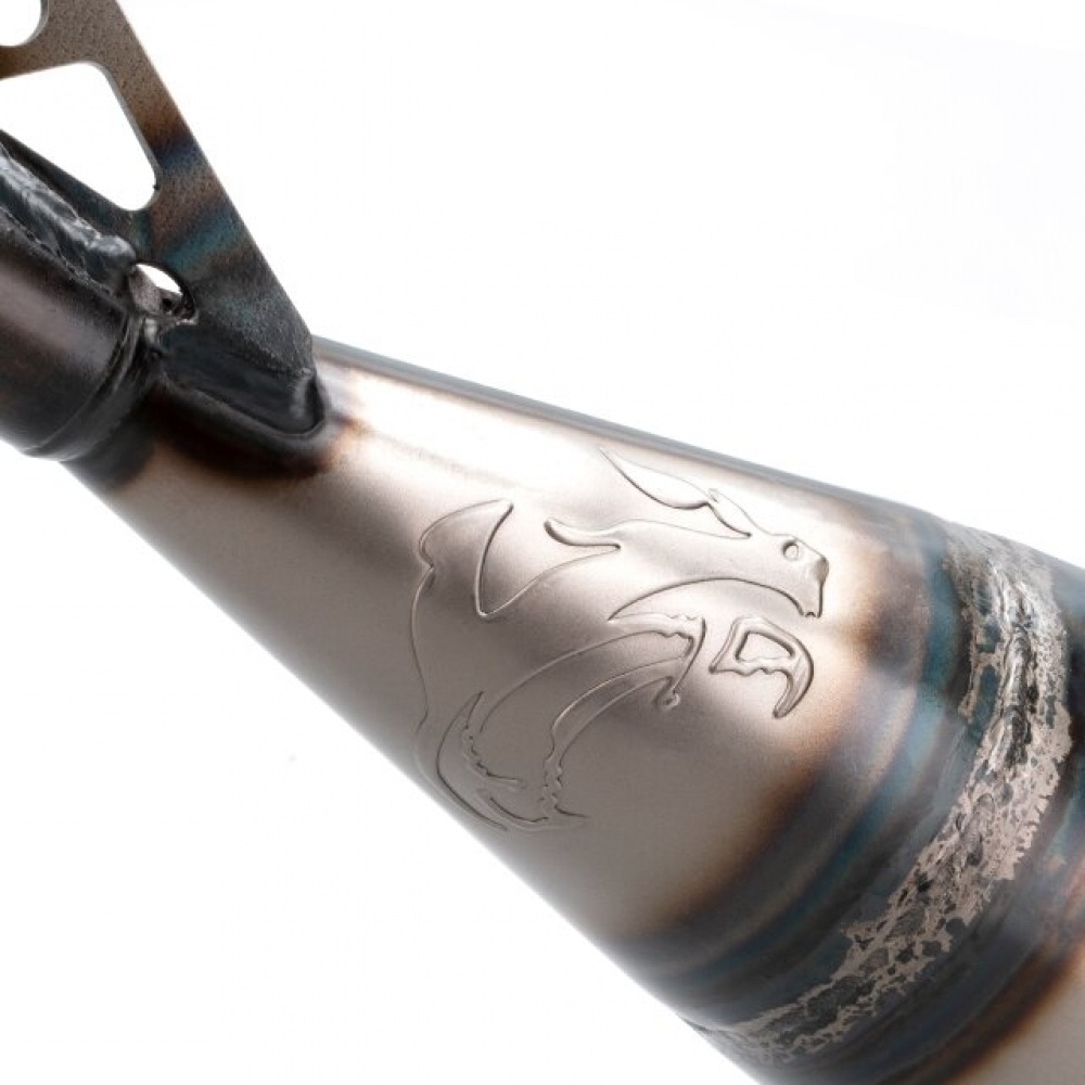 Top-of-the-line racing exhaust, designed for 50cc and 70cc engines. Shape and volume were optimized for sports / midrace and racing setups. It shines at high rpms, with excellent top speeds and great acceleration.