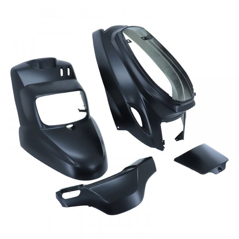 Комплект обтекателей 4 части матовый черный MBK Booster / BW's после 2004 года. Этот четырехкомпонентный набор, изготовленный из высококачественного пластика, заменяет поврежденные части обтекателя или может быть использован, если вы хотите придать вашему скутеру другой цвет.