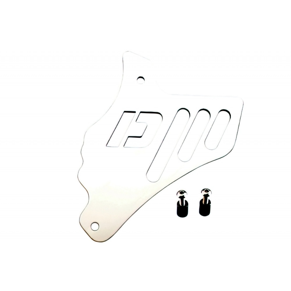 Front Sprocket Cover / Chain Guard aluminium silver Doppler Minarelli AM6. Stylish sprocket cover for your bike, protects the sprocket and chain and adds a cool racing touch. No modifications necessary, just mount in place of original cover.