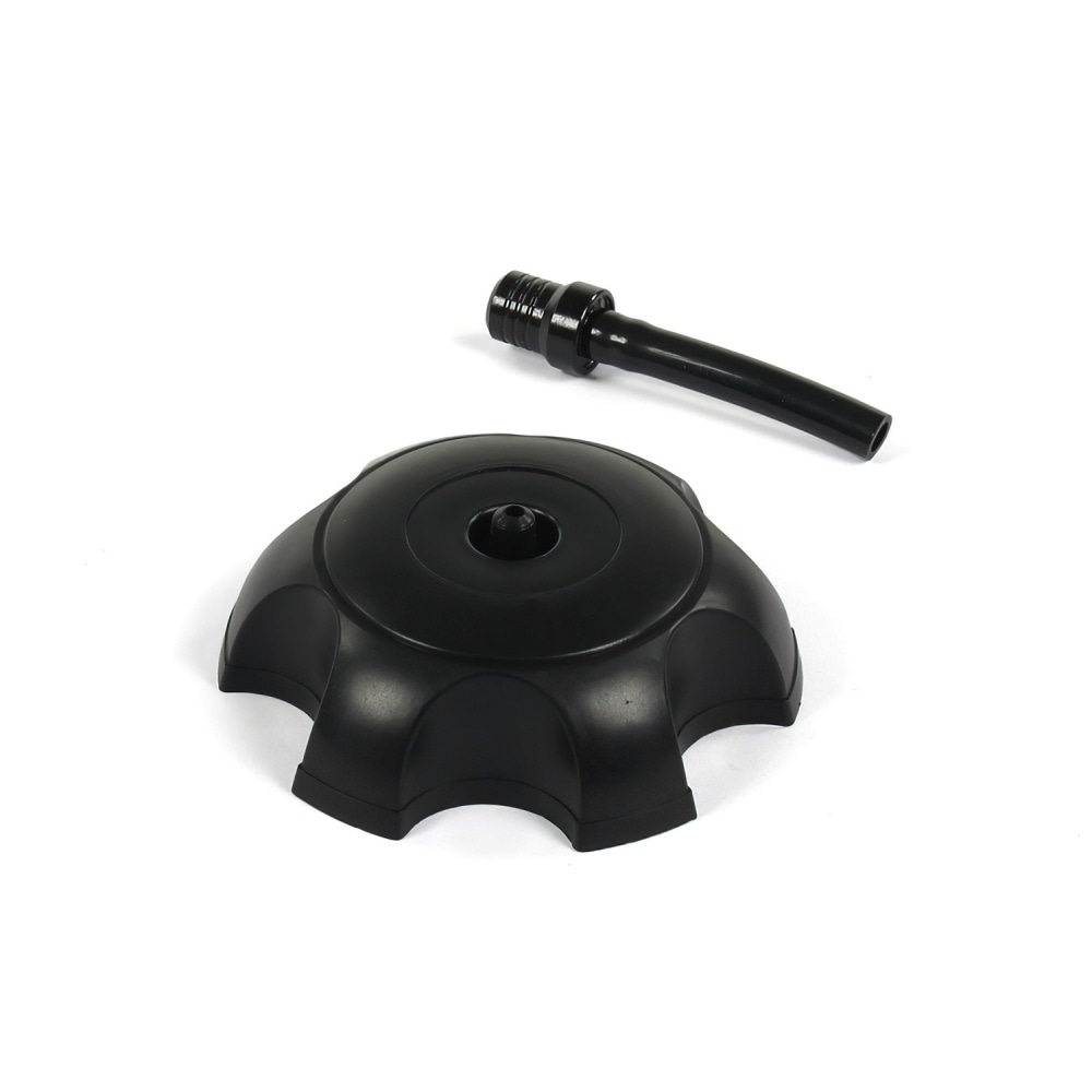 Fuel Cap CNC d.48mm Pit Bike / Dirt Bike black. Replacement fuel cap made of black plastic with black vent hose.