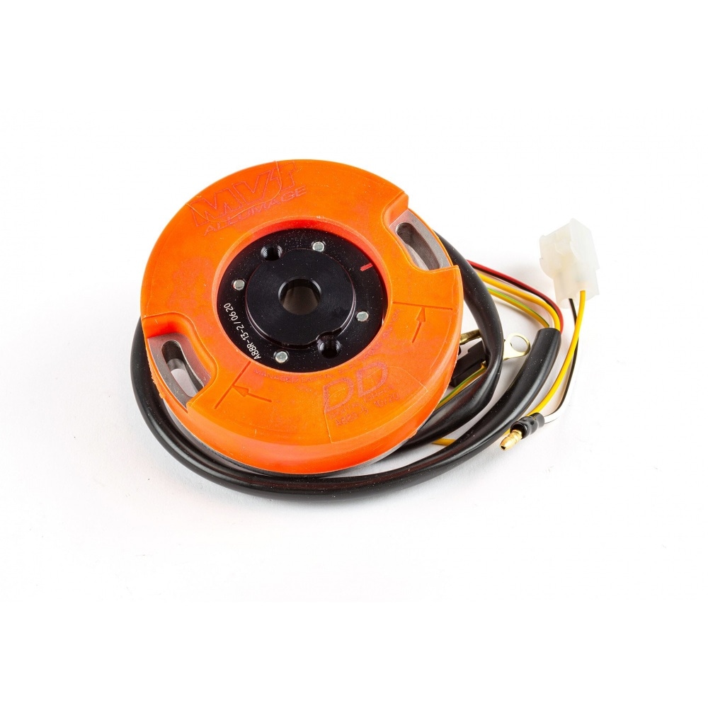 Internal Rotor Ignition MVT Digital Direct with light Derbi Euro 4 with balancing system, high-end racing ignition with its easily recognizable orange stator and black rotor.