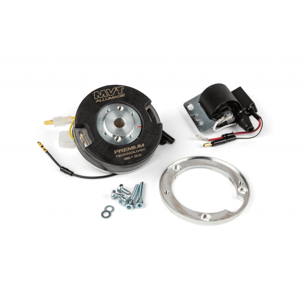 The MVT Premium is a top quality internal rotor ignition with 12V supply for lighting, instruments and battery, probably one of the most technically advanced ignitions on the market. This ignition can replace the original ignition including power supply for vehicle lighting / onboard electronics. The rotor is relatively light allowing the engine to rev quickly which in turn leads to excellent acceleration and throttle response.