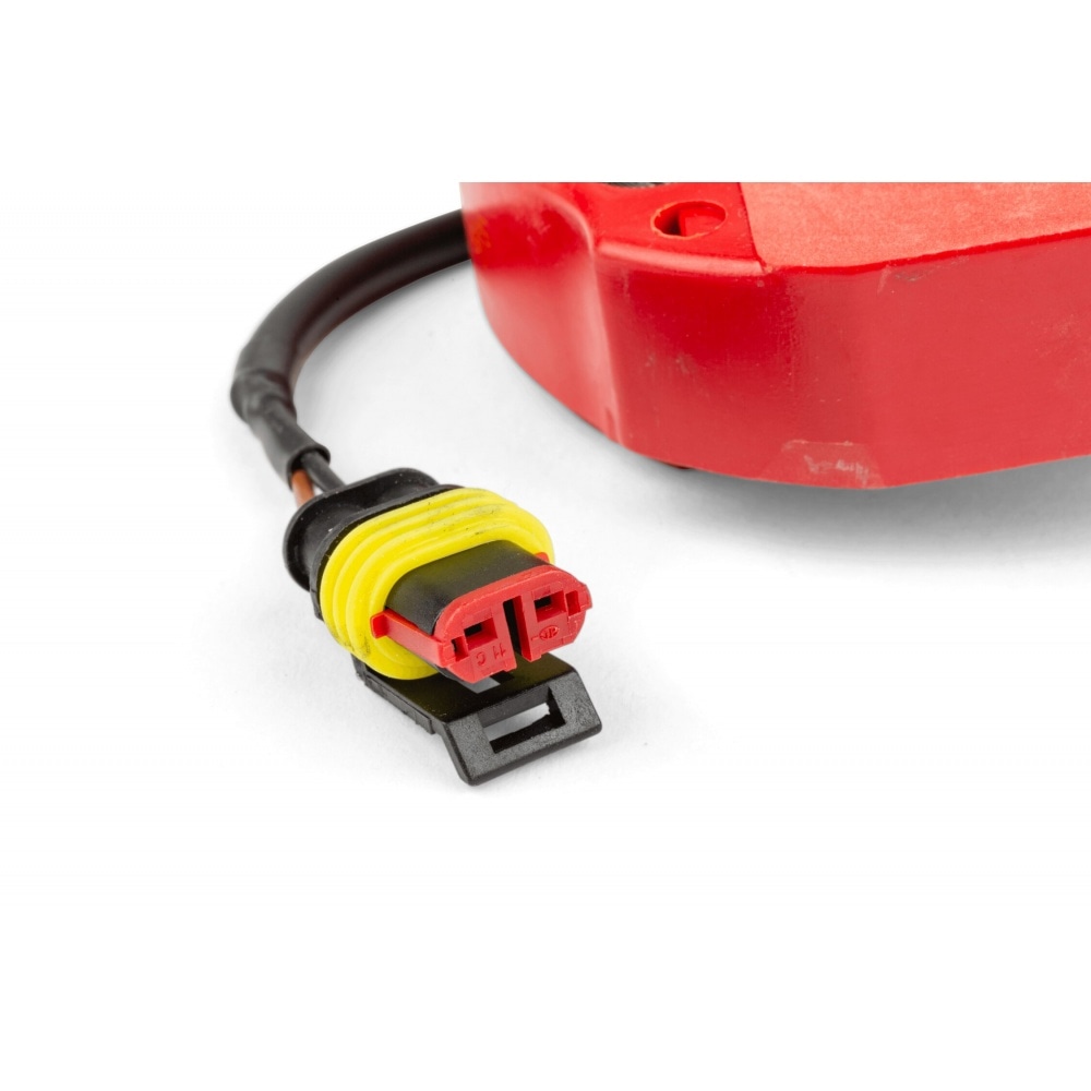 The bright red ITALKIT SELETTRA stator is a spare part for the analog ignition for Peugeot 103 mopeds.