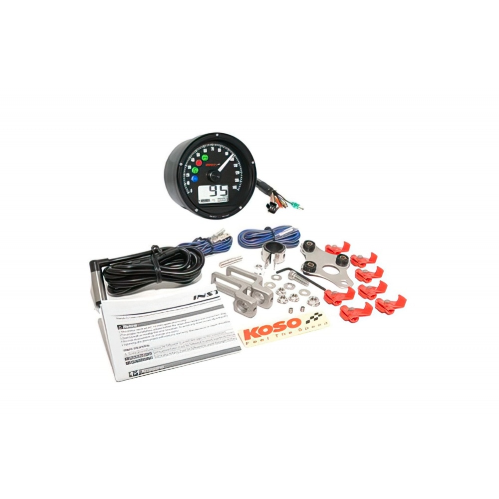 Koso Speedometer 140k/h black in proven Koso quality. It is an analogue + digital round black speedometer.