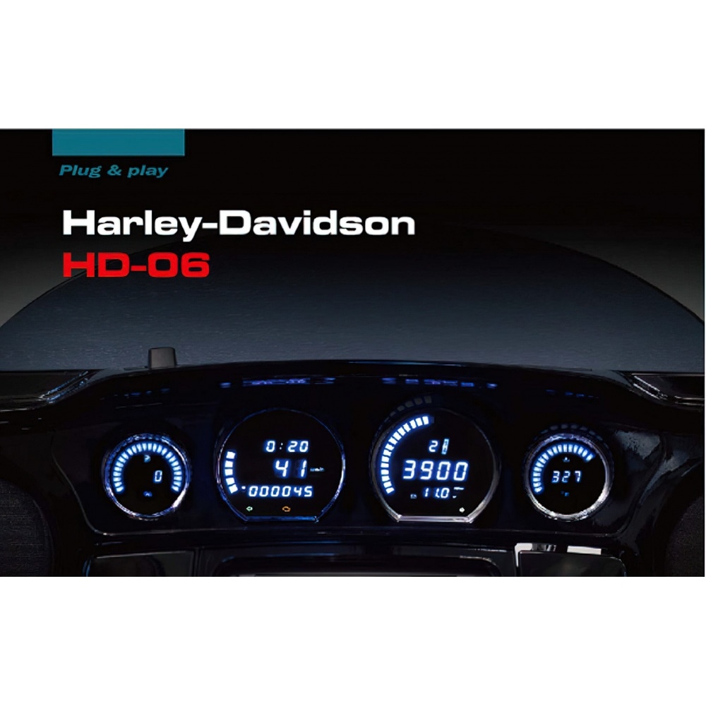 LED Dashboard 4 instruments Koso HD-06 blau / black Harley Davidson Touring 2014 - 20. Due to the great response from Harley fans, Koso decided to develop a complete dashboard with multiple instruments.