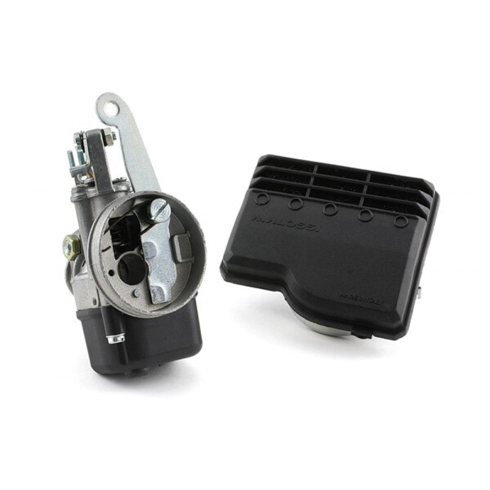 The kit includes a Dell’Orto carburetor SHA 13mm with integrated air filter; solid mount, no vacuum port, no oil injection port.
