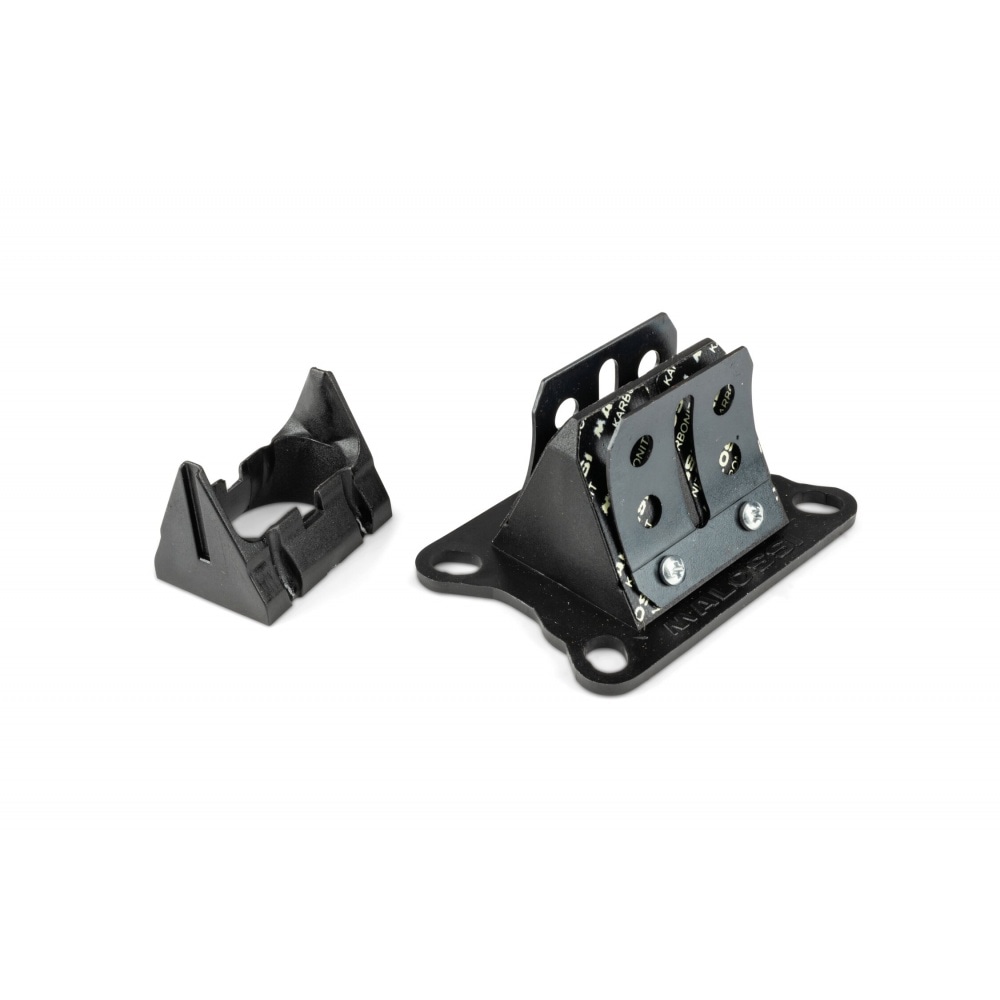 Malossi Crankcase Kit complete Peugeot 103 SP / MV for racing engines. Including special reed valve, straight intake manifolds (for 15mm and 19/21mm carburetors), gaskets and screws. Its redesigned interior and the redone and improved transfer port area allows for exploiting the full potential of your racing cylinder throughout the entire power band.