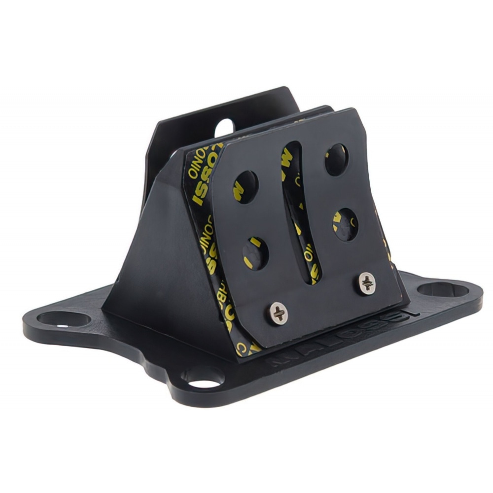 Malossi Reed Valve MHR VL17 carbon fiber AM6 / Derbi Euro 2 / Euro 3 with 2 big carbon fiber reed petals (0.30mm) for improved cylinder filling and optimized flow, especially noticeable at high and very high rpm.