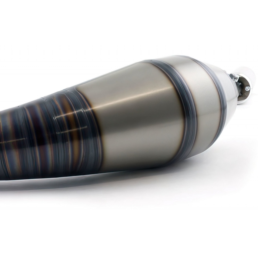 Special attention was paid to its volume to develop the perfect match for the MXS GP 2 90cc cylinder.Now, after many tests, we managed to design an exhaust that’s incredibly powerful when combined with 86cc to 95cc “Hyper Racing” cylinders.