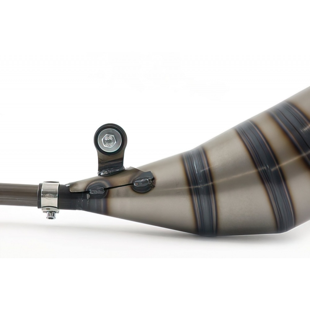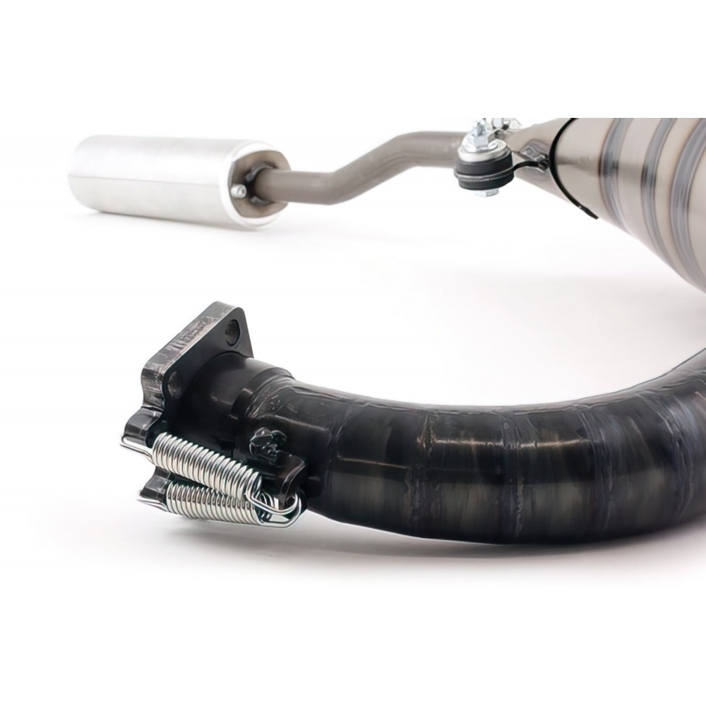 With our adapter flange (sold separately), you can mount this exhaust with standard Derbi and Minarelli cylinders (with 2 screws).