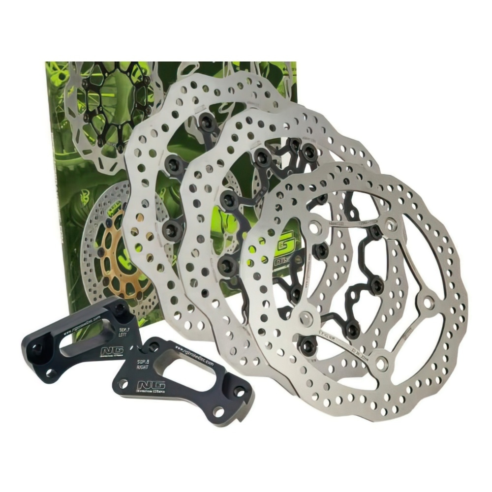 Oversize brake discs for maxi scooters: NG Oversize Brake Disc Set (front 298mm / rear 282mm) Yamaha T-Max 530c after 2012. Ideal for upgrading your brake system, with considerably improved stopping power. Brake caliper adapter(s) are included.
