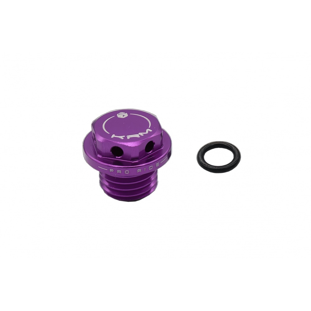 От французских экспертов по тюнингу KRM Pro Ride: Oil Filler Screw for 50cc bikes, types Rieju MRT, Beta RR, Fantic 50, Sherco 50, Yamaha DT and many more models. The cap is completely CNC machined from aluminum, has a high quality anodized finishing and a laser engraved KRM logo.