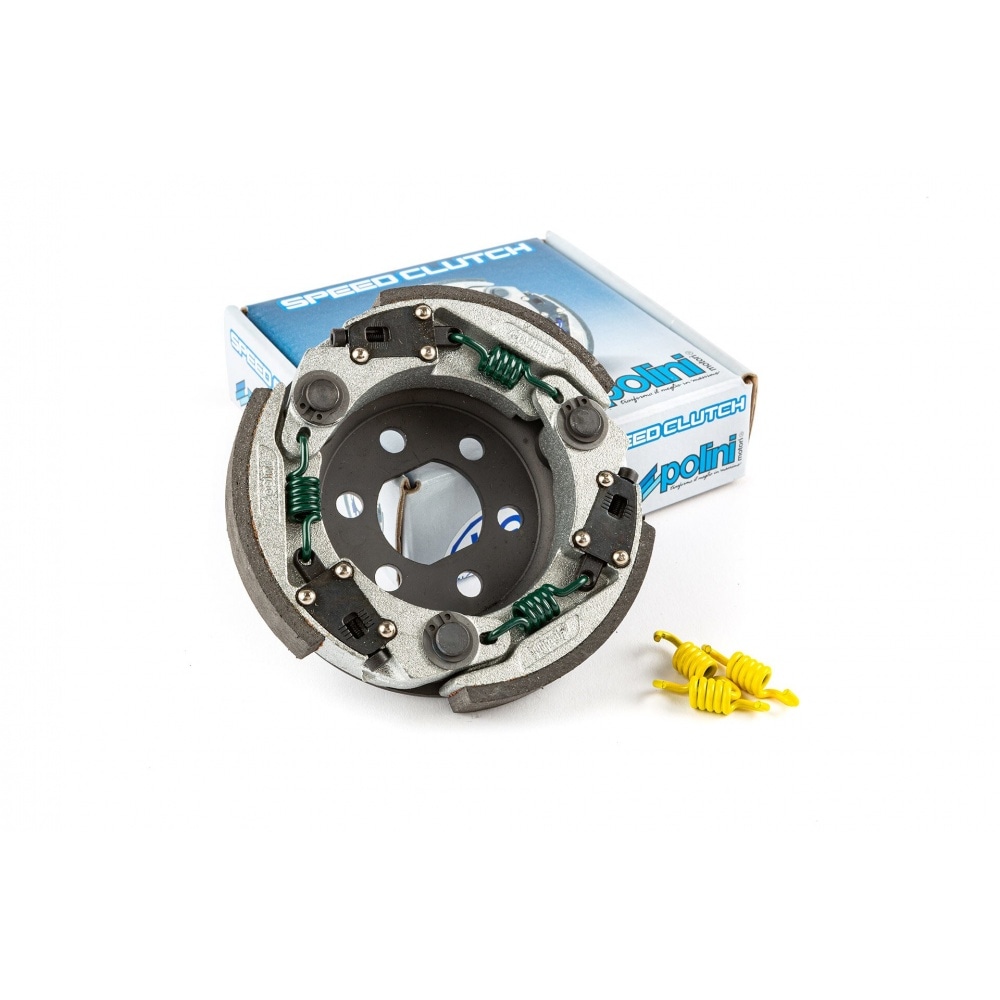 Polini is taking their “For Race” clutch to the next level. While sticking to their successful adjustable spring preload system, they now equip their racing clutches with 3 instead of 2 shoes with improved lining. 2 sets of clutch springs in different strengths are included.