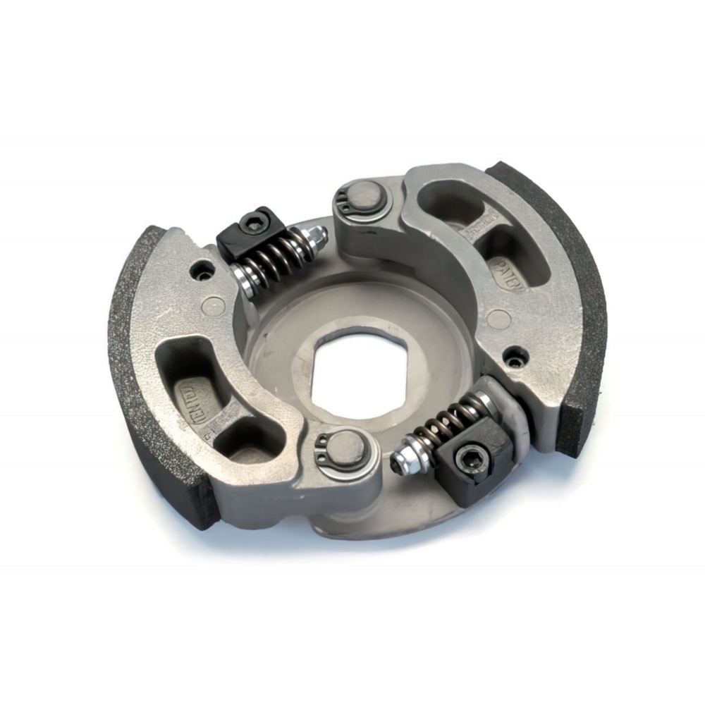 2 reinforced clutch shoes that can be precisely adjusted with continuously adjustable springs. Clutch engagement point can be raised or lowered any way you want.
