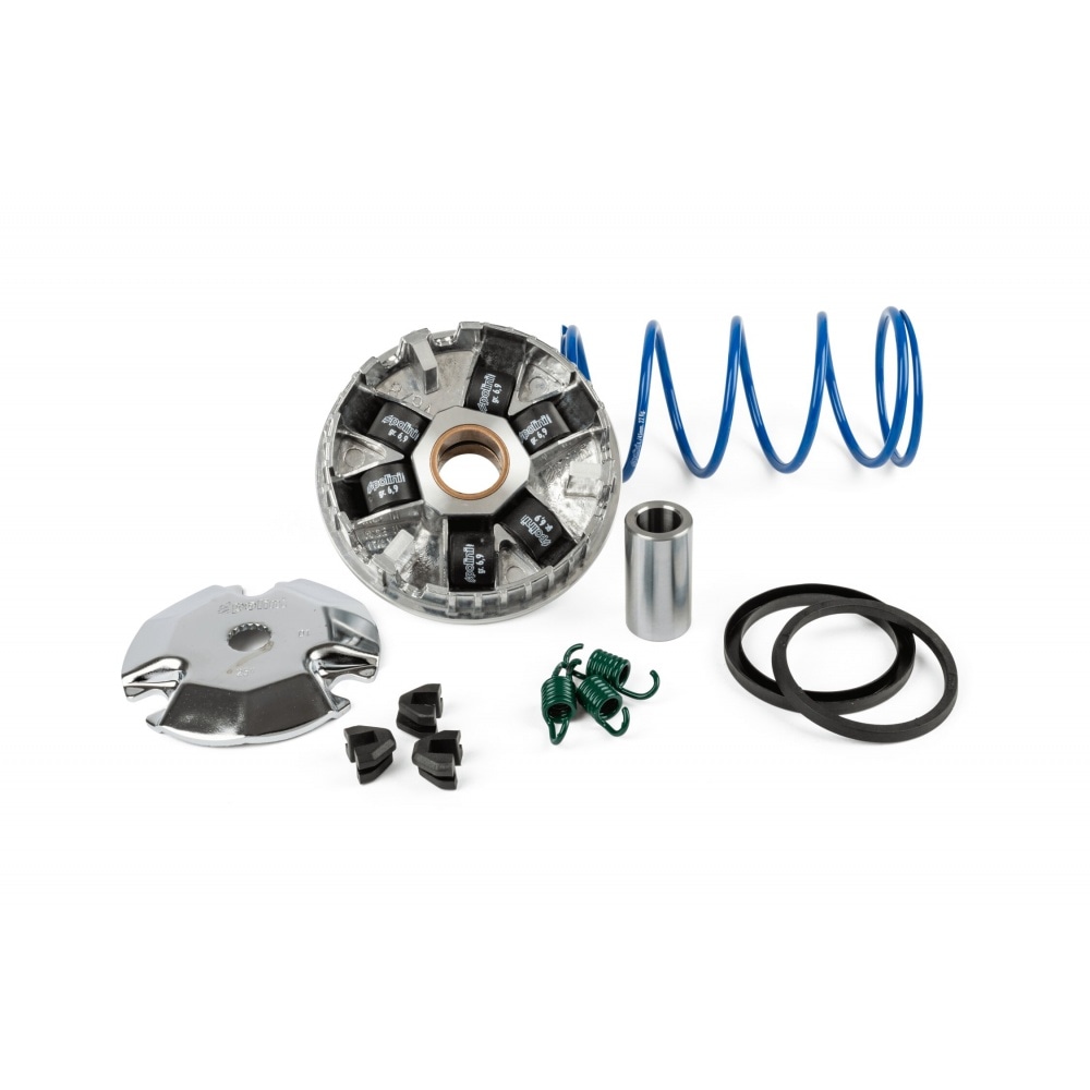 В комплект входят роликовые грузики 16x13 мм / 6,9 г (для использования с оригинальным выхлопом) и усиленная пружина крутящего момента. По сути, это улучшенный преемник знаменитого "Speed Control" от Polini.