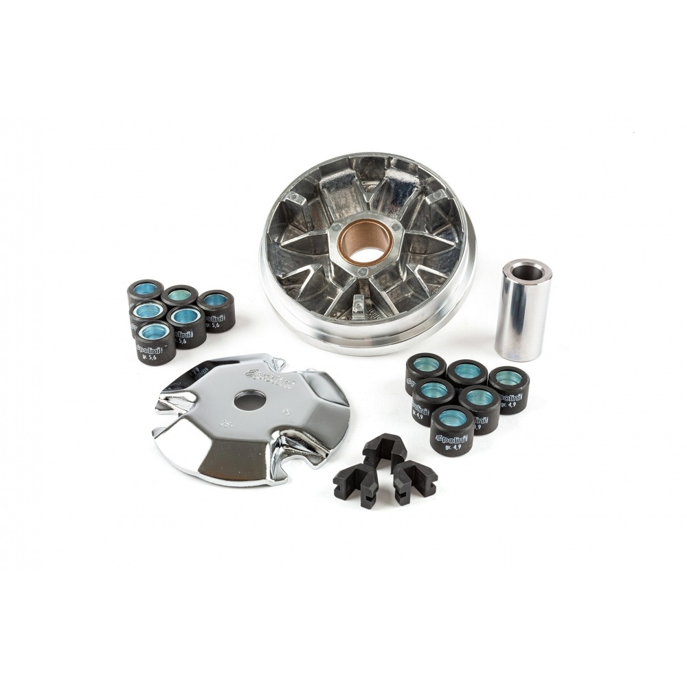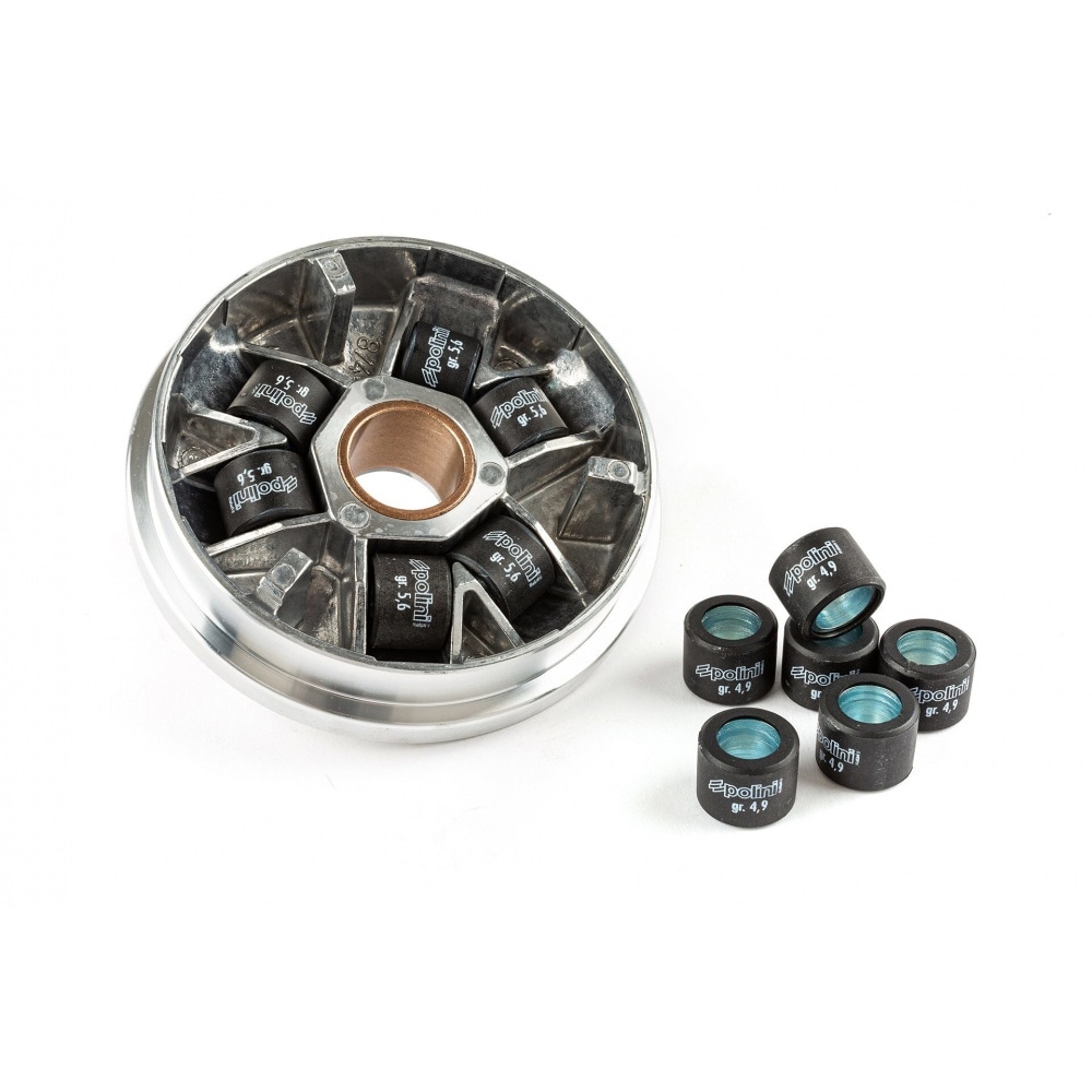 Работа вариатора заключается в обеспечении плавной передачи трансмиссии путем переключения различных передаточных чисел. Широкий регулируемый диапазон передаточных чисел этого вариатора Polini обеспечивает отличное ускорение и немного более высокую максимальную скорость. Помните, что выбор правильного веса роликов очень важен, если вы хотите получить хорошие результаты.