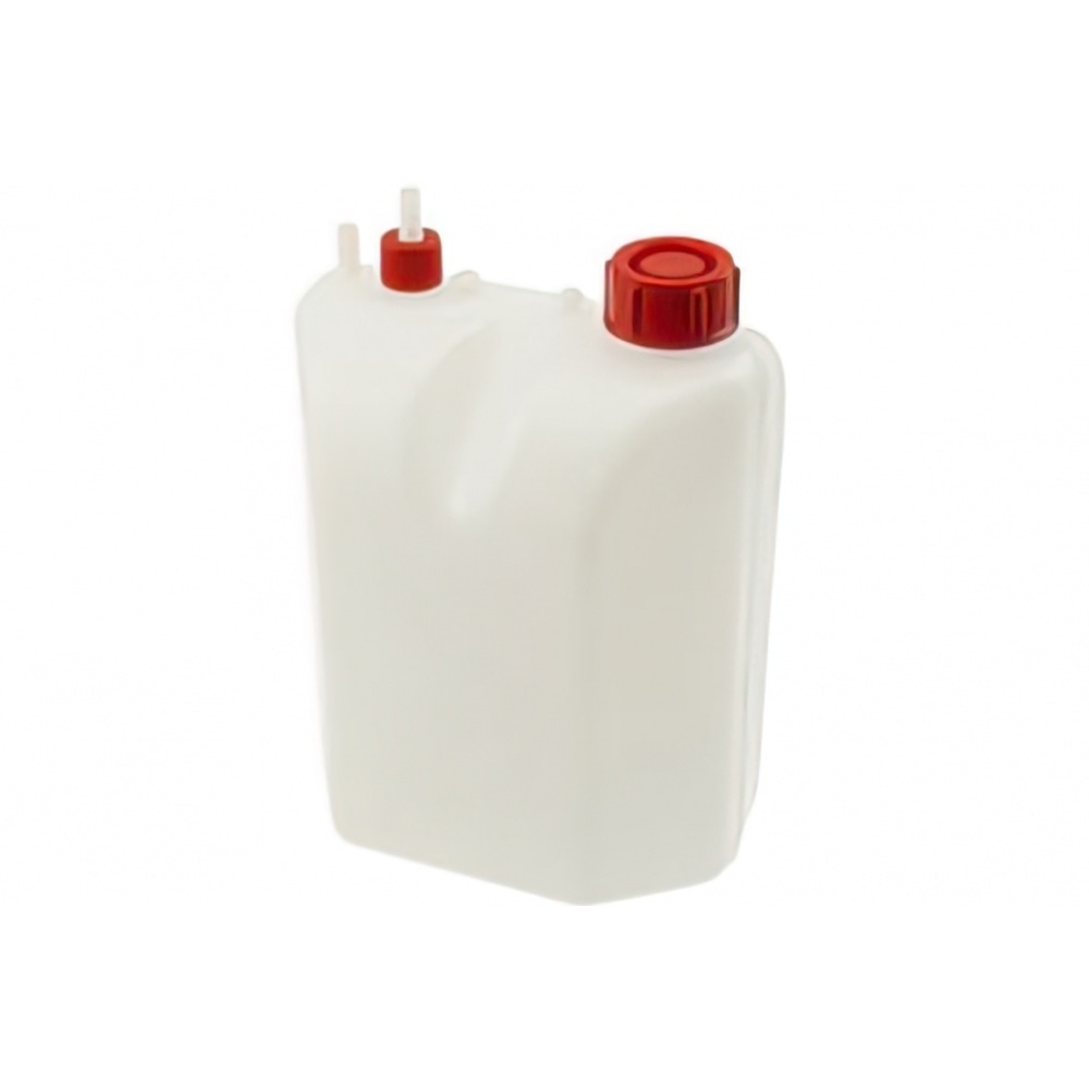 Fuel tank, 3l, universal, with screw-on cap, screw-on connection, with outlet for vent / overflow.