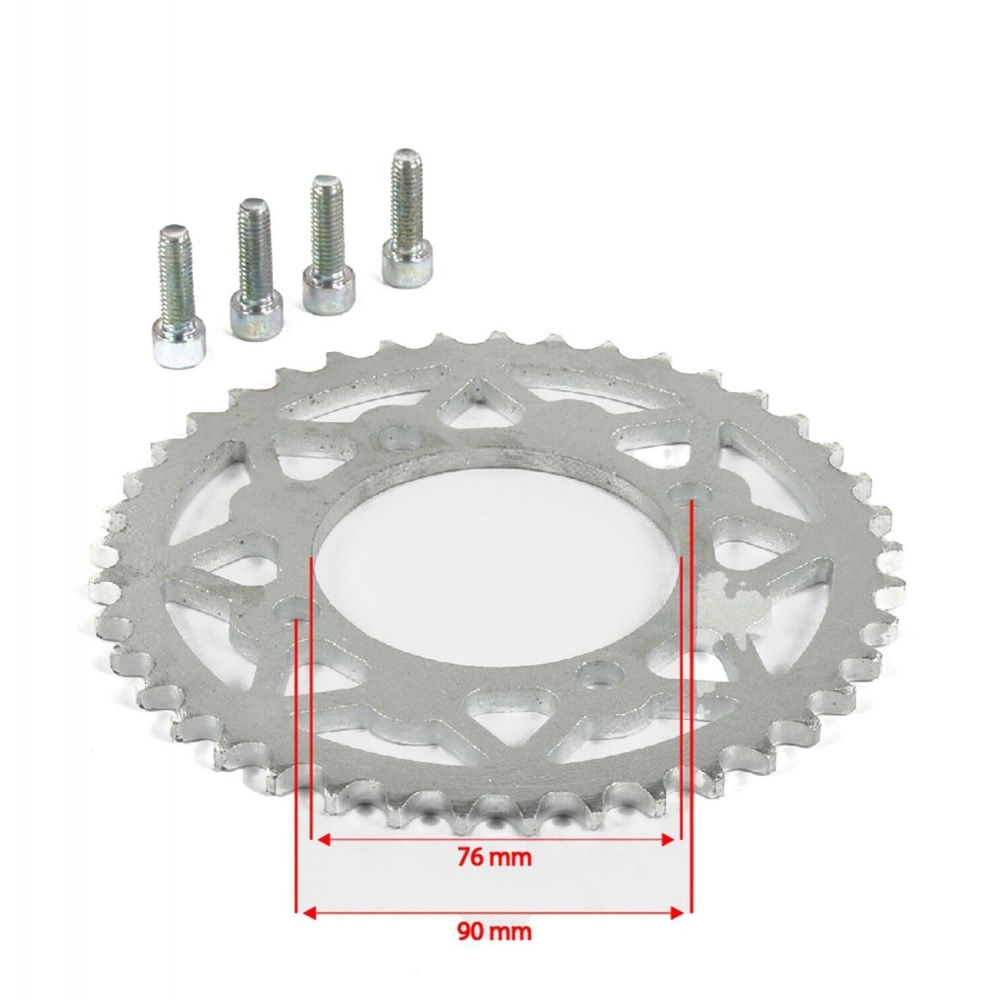 Rear Sprocket 420 Pit Bike / Dirt Bike. Available in different versions, for chain type 420. For wheel hubs with 76mm diameter. Screw hole spacing is 90mm.
