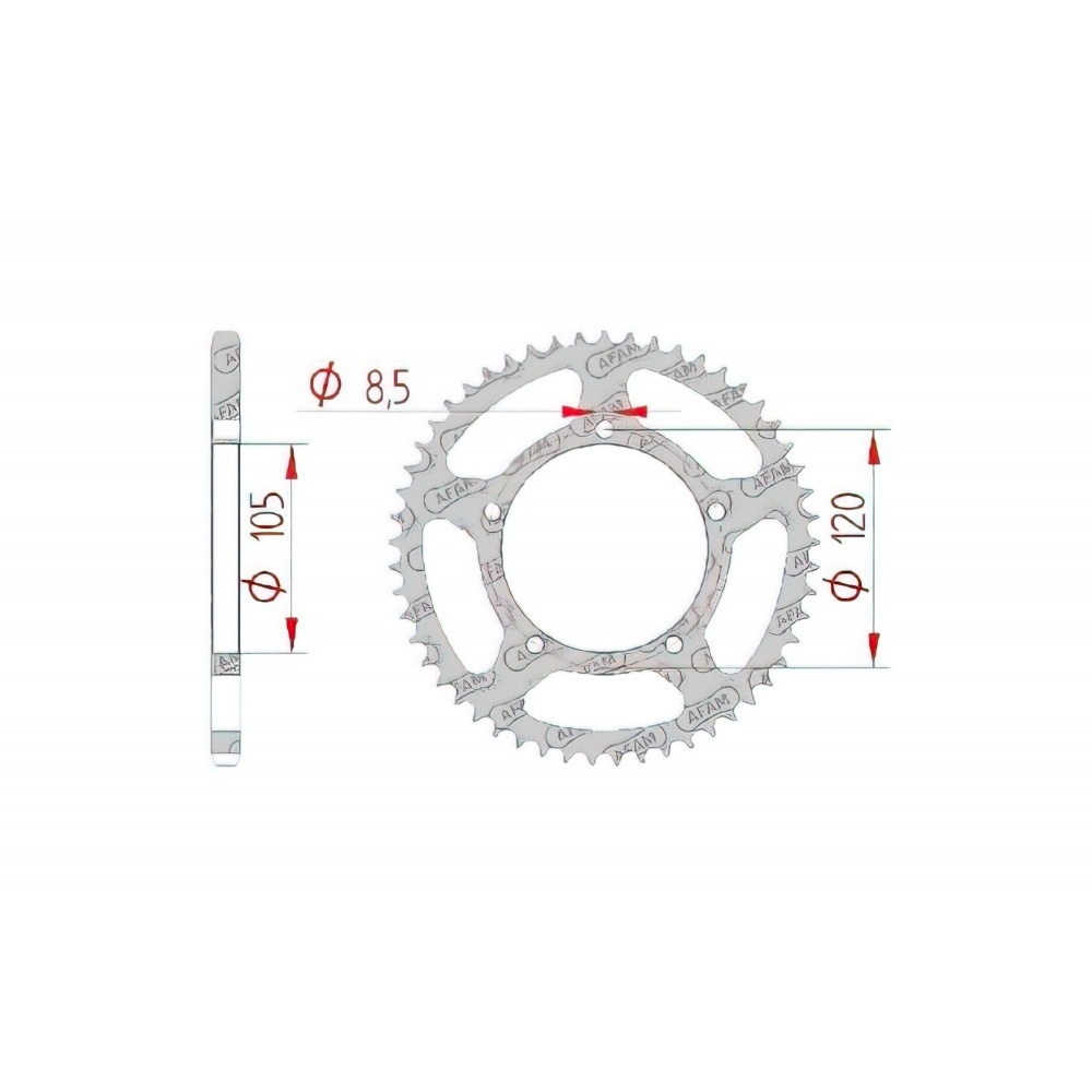 Rear sprocket for chain, perfect as replacement for original or to change the drive ratio. The sprocket has 51 teeth for size 420 chains, with 5 holes and 105mm diameter. For Generic Trigger.
