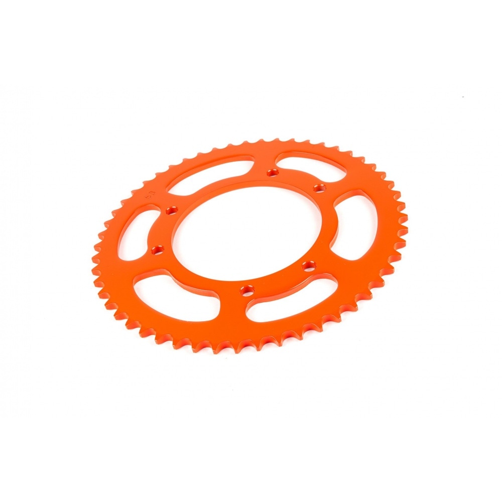 Replace the sprockets on your moped and add some customizing while you’re at it: Rear Sprocket 53 teeth – 420 orange Derbi Senda / Rieju MRT. The sprockets are painted with a very wear-resistant paint, they’re fully functioning, top quality sprockets. Eye-catching replacement for original gear, or for changing the gear ratio of the transmission.