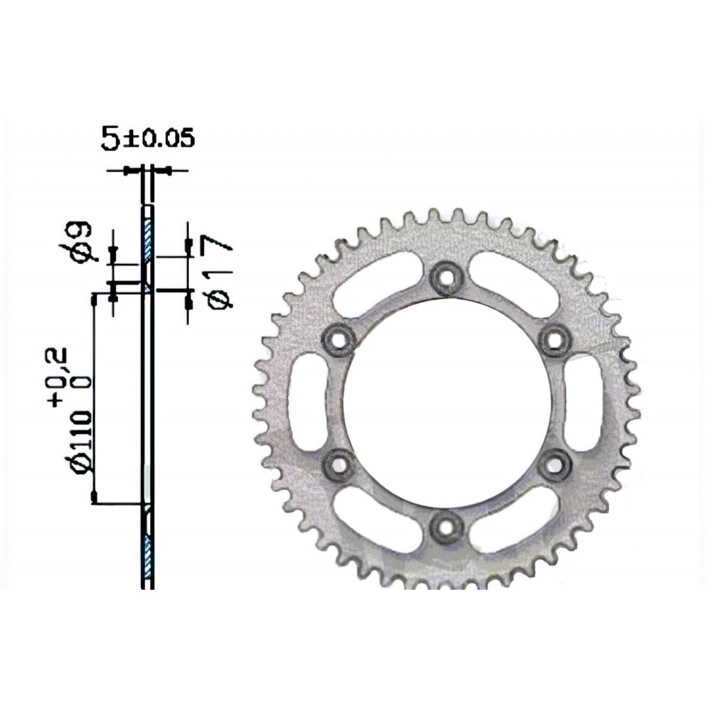 Rear Sprocket steel 48 teeth – 420 CPI SX / SM, rear sprocket for chain, perfect as replacement for original or to change the drive ratio. The sprocket has 48 teeth for size 420 chains, with 6 holes and 110mm diameter. For CPI SX / SM.