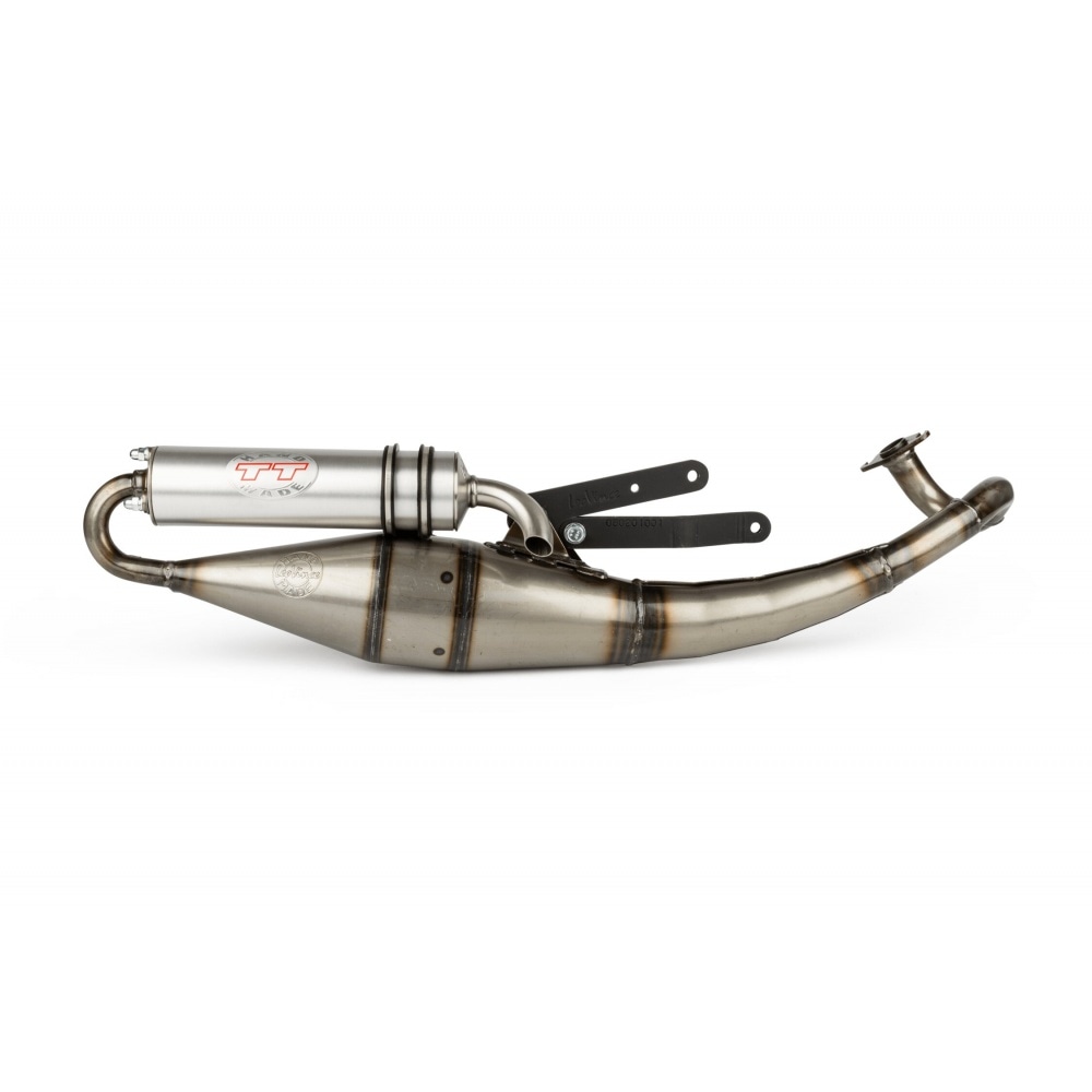 The expansion chamber is made of sheet metal, rolled and welded, and comes with a aluminium silencer. Basically designed for original and 50cc sports cylinders, it yields sufficient power, especially at low and mid rpm range. It is balanced with good acceleration.