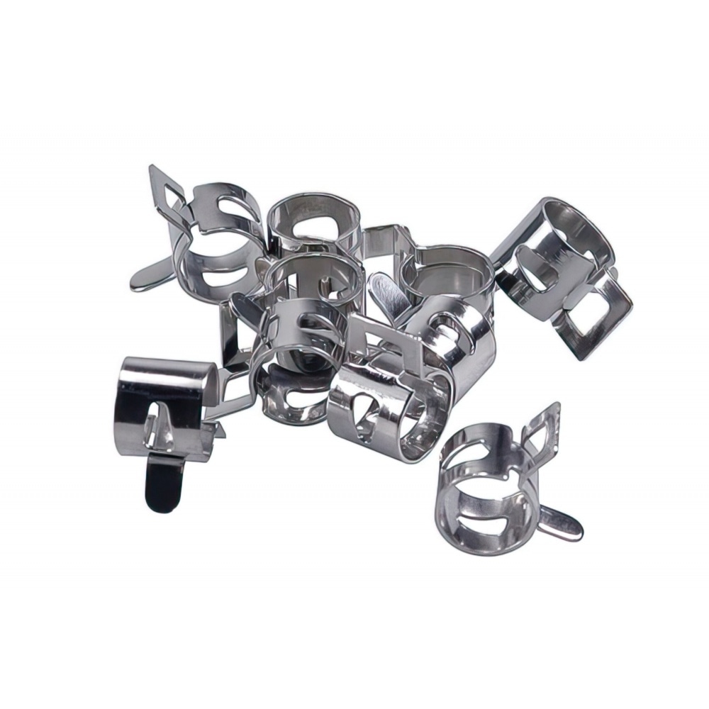 Мы можем предложить вам эти наборы пружинных зажимов. С диаметром 5,5 и 6 мм, они идеально подходят для небольших соединений на карбюраторе, цилиндре и/или масляном насосе.
