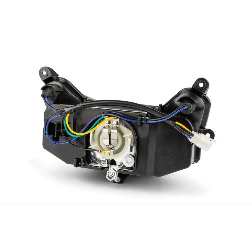 STR8 Headlight MBK Nitro / Aerox, black headlight with clear transparent lens by optical tuning specialist STR8. This headlight unit is basically identical to the original unit, the only difference is that it is black. Just mount it in place of the original, no modifications necessary.