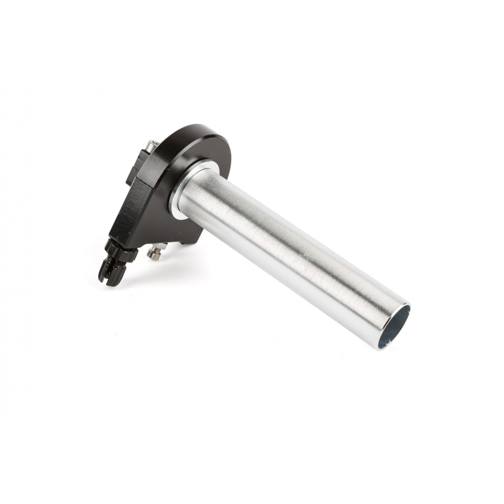Throttle Grip black for 22mm and 28mm diameter handlebars. The grips are anodized black + aluminium. Its vertical cable outlet lends it a cool “tuning” look, and on top of it all, it is very affordable!