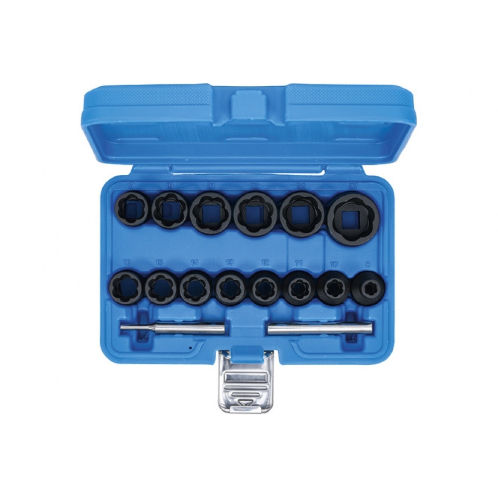 Twist Socket Set (spiral) screw extractor BGS 12.5 mm (1/2″) Drive 8 – 27 mm 16 pcs.
