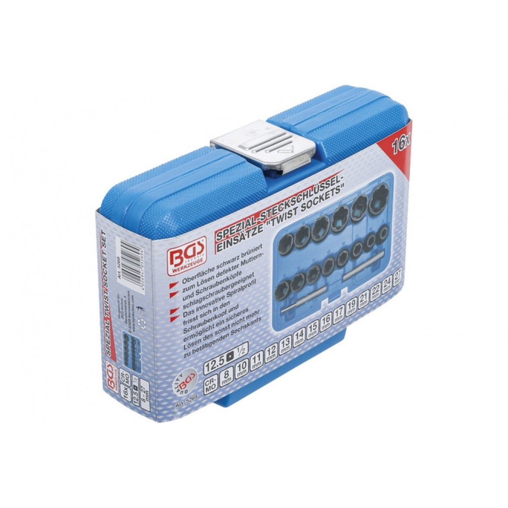 Twist socket set from BGS with 1/2” sockets. The innovative design allows for loosening even damaged nuts and bolts. The set comes in a practical case.
