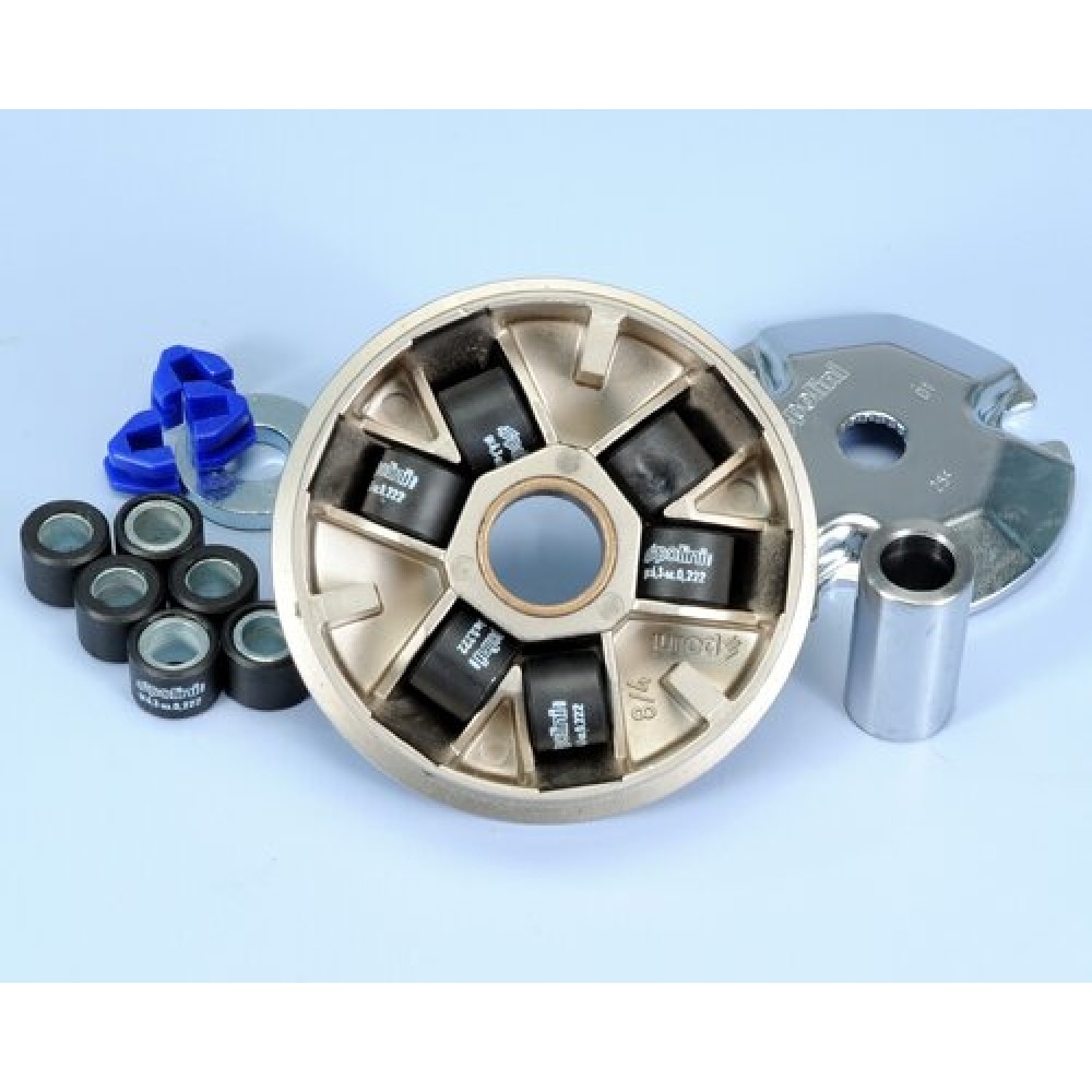 Polini’s popular Hi-Speed variator for 50cc engines, top tuning product from Italy: Redesigned and optimized angles expand the transmission range and lead to noticeably more power, which mainly shows in better acceleration, but top speed is also increased a bit. The hard chromium plated roller tracks lead to excellent and extremely smooth running performance and increase the service life of the variator.