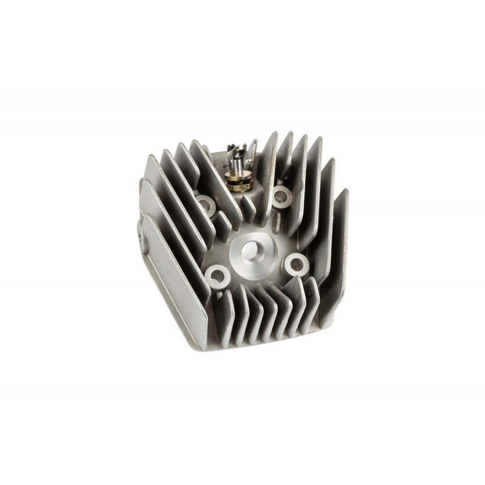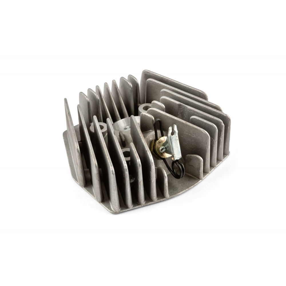 Cylinder Head big fins w/ decompression valve Peugeot 103, with bigger fins for improved cooling. The large cooling fins capture more fresh air while allowing better heat dissipation. The head provides better cooling than the original cylinder heads with small fins.