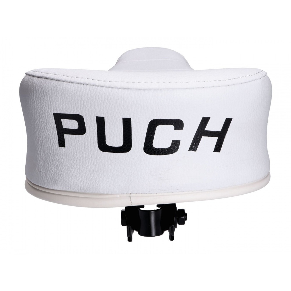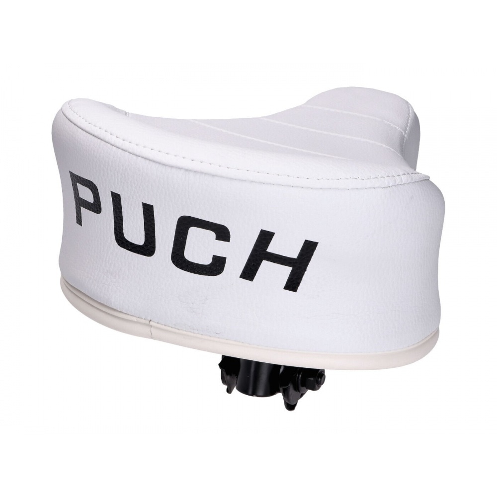 OEM quality part for your moped: Seat new type white with Puch logo.