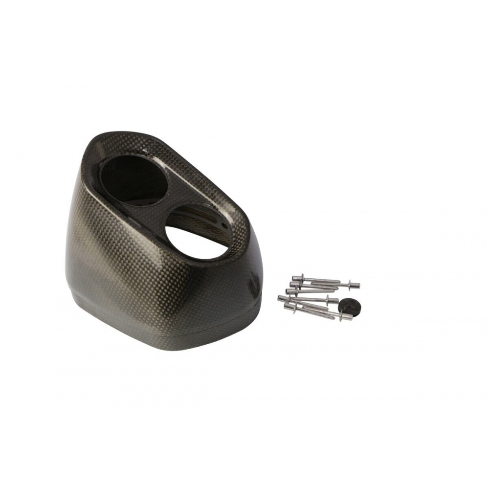 Spare part for Akrapovic exhaust: Silencer end cap made of high-quality carbon. The end cap is supplied with stainless steel rivets and plugs.