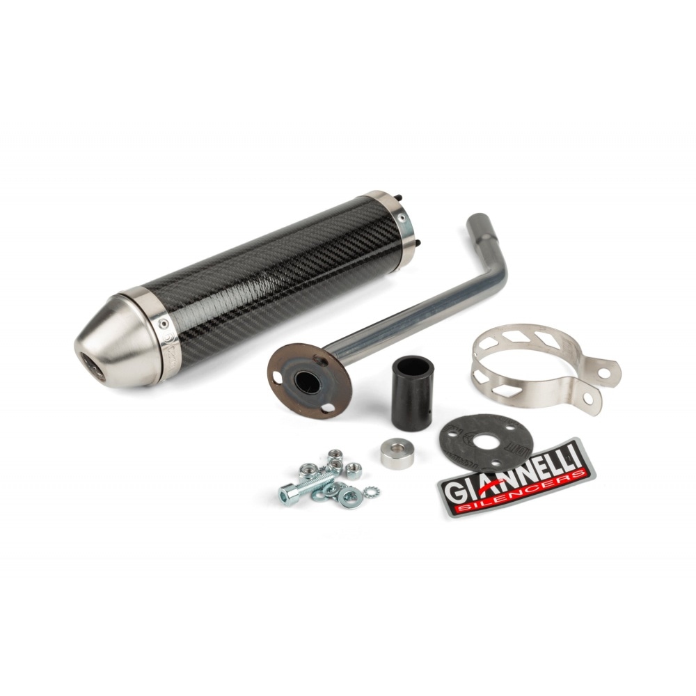 Giannelli karbonizēts klusinātājs. Giannelli divtaktu izplūdes gāzu sistēmas parasti tiek pārdotas bez trokšņa slāpētāja, šis ir atbilstošs trokšņa slāpētājs Giannelli izplūdes gāzu sistēmai. Enduro GIA34083HF.