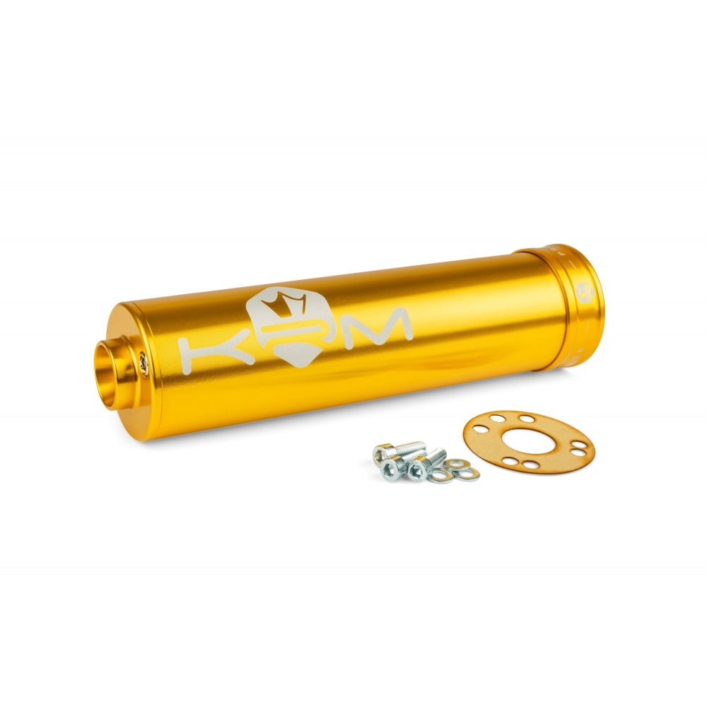 Silencer KRM Pro Ride, high quality aluminum silencer, perfect for KRM's powerful racing exhausts and compatible with many other tuning exhausts. This is the KRM Pro Ride Silencer in Turquoise. It was developed for 70cc to 90cc engines and will get you a slight but noticeable increase in power.