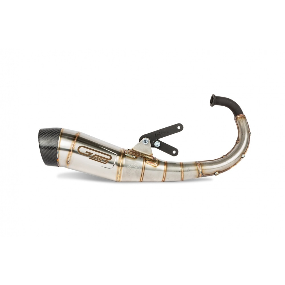 Like its predecessor, the “GP” series features impressive performance and great design. The hand-welded exhaust with carefully welded seams and lasered logo comes with a high quality and extremely temperature resistant 12K carbon end cap.