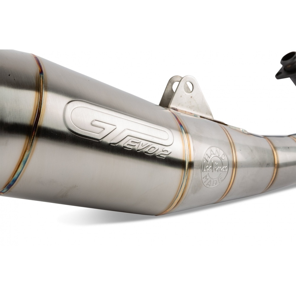 “GP Handmade GP Evo 2 Piaggio Runner / NRG ” by LeoVince, combining great look with impressive performance! Developed and manufactured with a lot of know-how and experience by Italian specialist LeoVince, these exhausts are strongly inspired by the racing look of GP engines. Typical of LeoVince, they are street-legal, though, and are ideally suited for original and sports engines. For those of you who want a look that sets them apart!