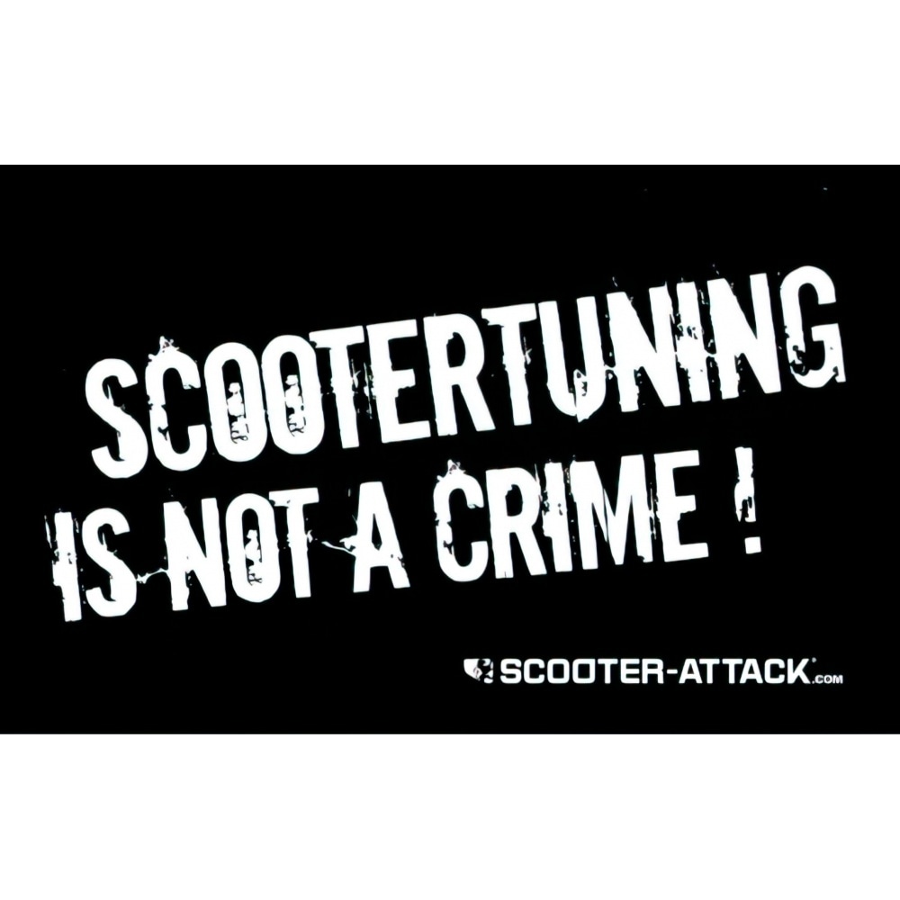 Mūsu 2002. gada uzlīmes "Scootertuning is not a crime" vecā versija! Tagad pieejama atkārtota izdruka visiem šīs kulta uzlīmes cienītājiem.