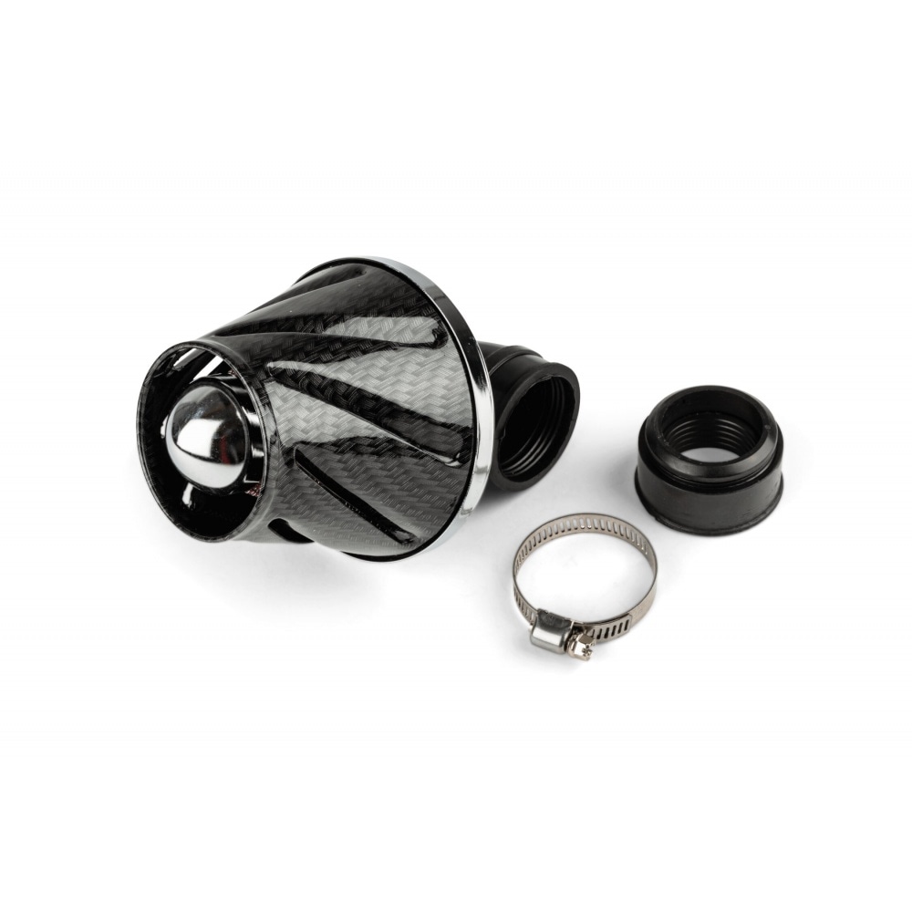 STR8 Air Filter Helix 38 / 28mm – turbine style wire mesh air filter, with angled connection. It comes with an adapter to allow for use with 12 – 21mm carburetors. Note: using this kind of tuning filter means you should increase the size of your main jet by 10 to 20.