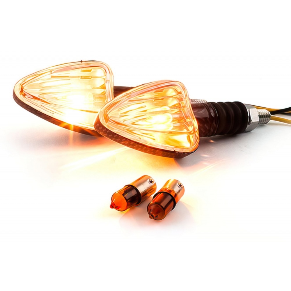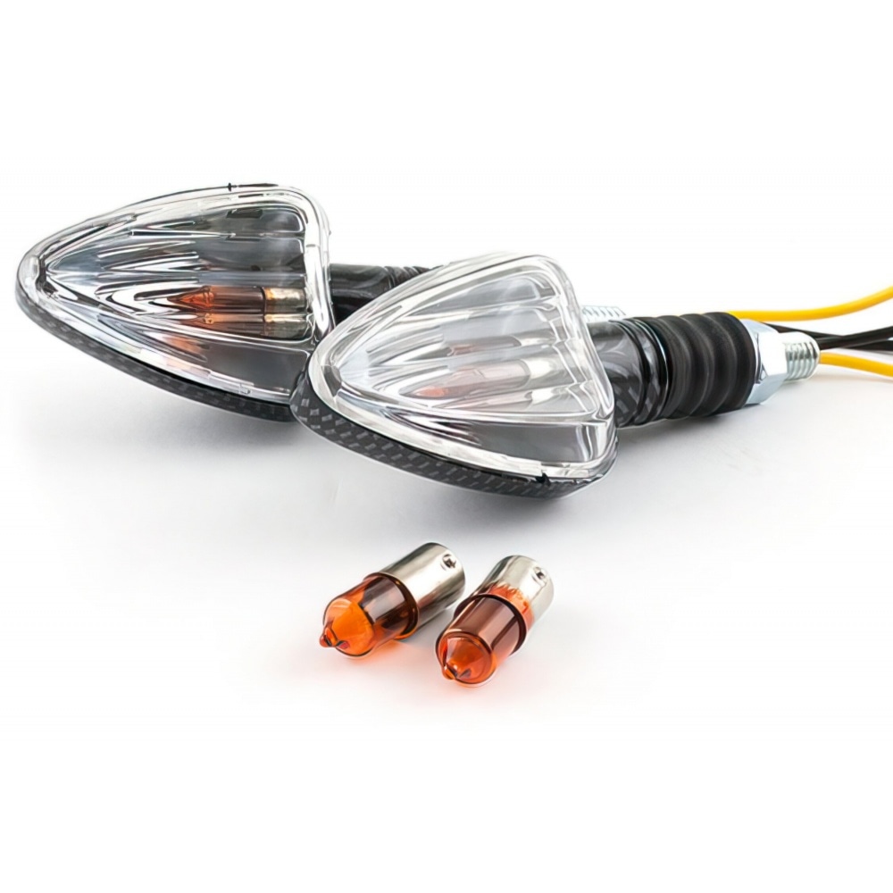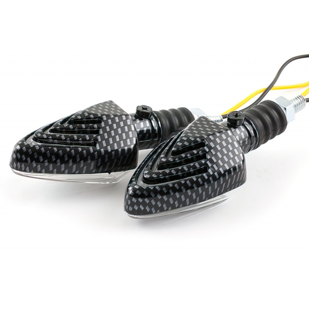 If you’re looking for new indicators that are not too showy but rather classy: STR8 Mini Indicators rectangular carbon / transparent. They are universal meaning they can be used on the majority of vehicles.