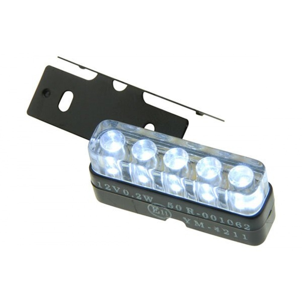 License plate light with 5 LEDs. Mounting materials are included. It is street-legal.
