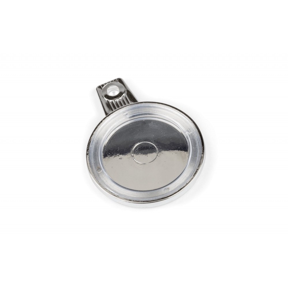 Tax Disc Holder round plastic chrome, for securely holding the insurance discs used in France and some other countries.