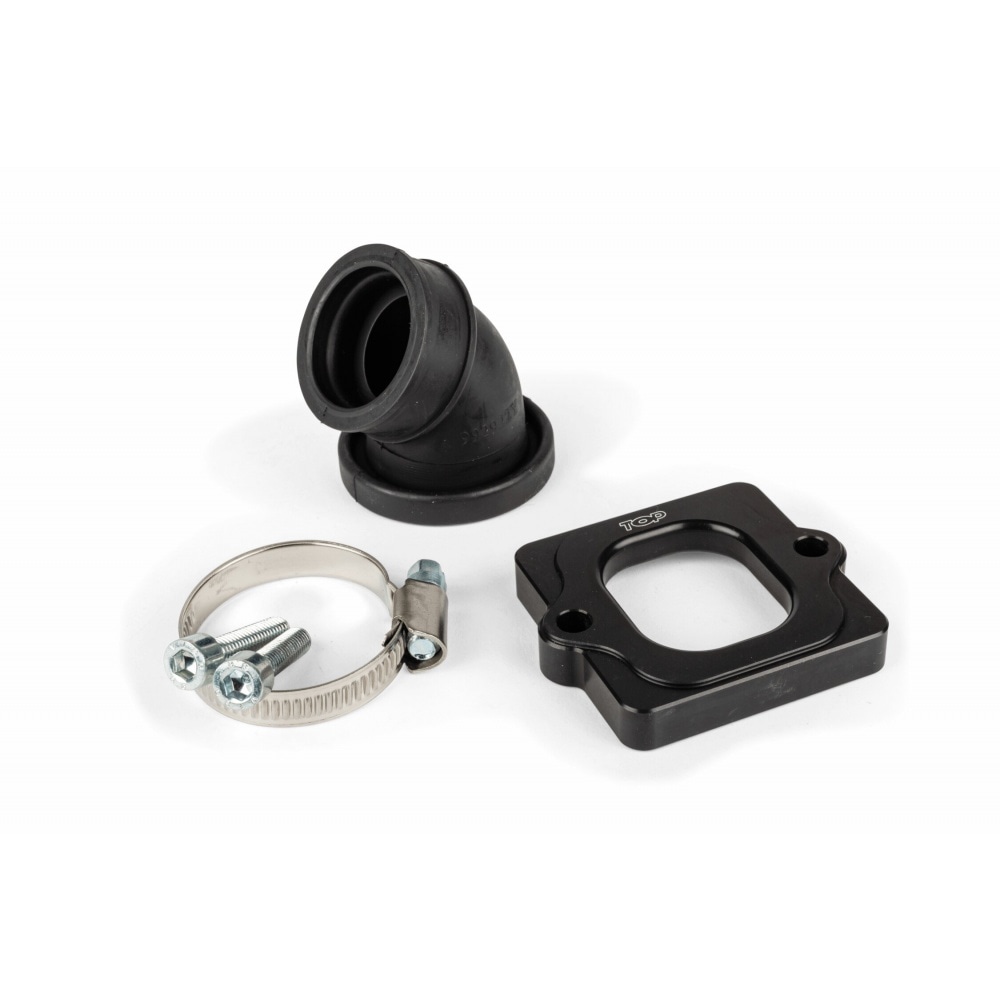 Top Performances TPR Intake Manifold 360° Mikuni TM24 Piaggio NRG / Typhoon. Anodized black aluminium mount + rubber manifold. It is 360° adjustable.
