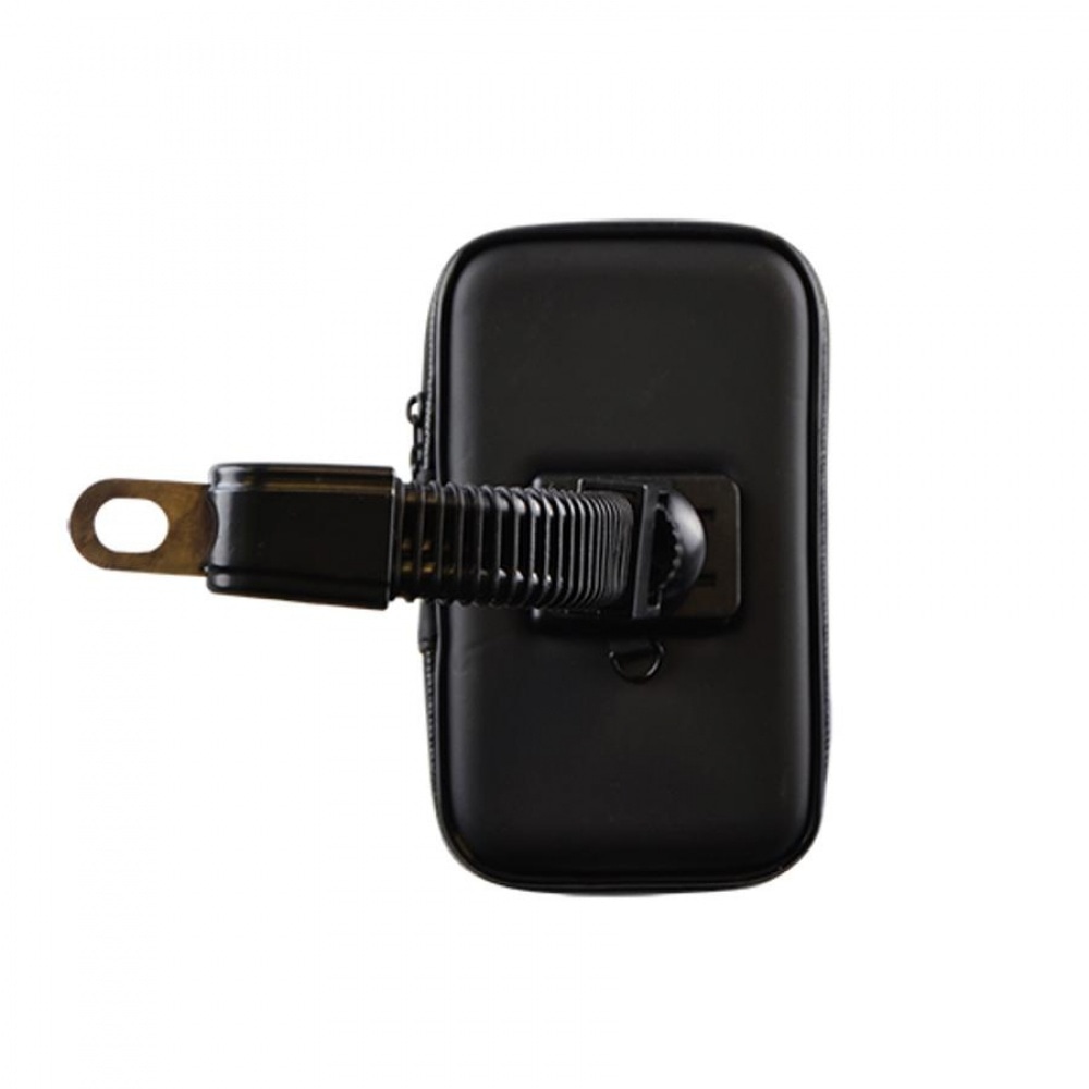 You want to keep an eye on your GPS / phone while driving? We have the solution: Smartphone Holder 5,5” for mirror. The holder is mounted to the mirror, it is adjustable so you can keep your eyes on the monitor no matter what riding position you prefer. The cover and zipper are 100% waterproof so you can even use your device when it’s raining. Includes mount / bracket, the outer cover and 3 foam pads to adjust to phone size.