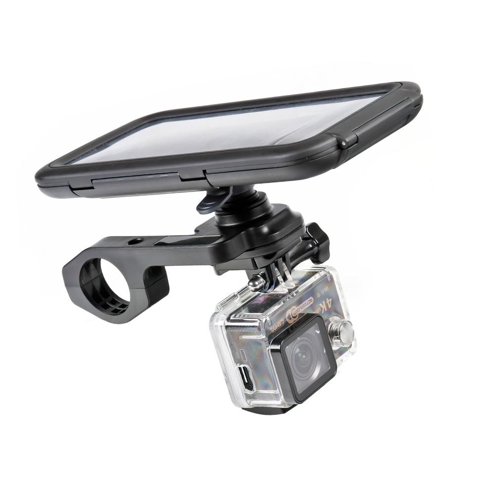 Smartphone Holder Opti Combo for 22-31,75mm handlebars. Lampa Opti Combo, handlebar mount for action camera / camcorder and mobile phone.