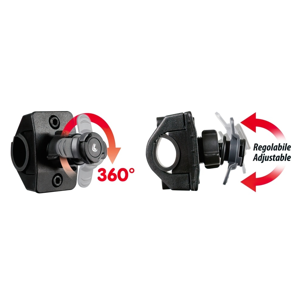 Fits handlebars with a diameter of 16 mm and 32 mm and allows both vertical and horizontal use and display of the phone.