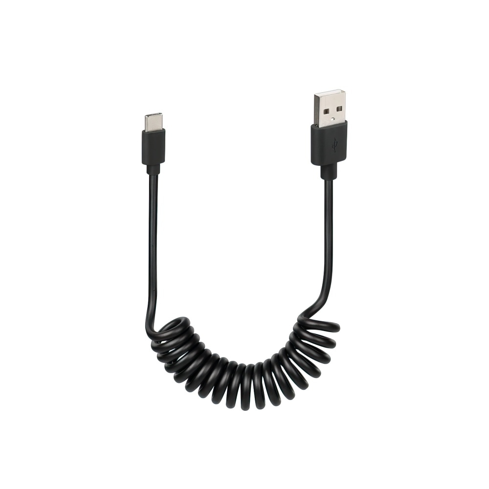 USB Cable coiled type -C- 100cm black. This Type-C cable will stretch when needed and return to its original length when not in use.