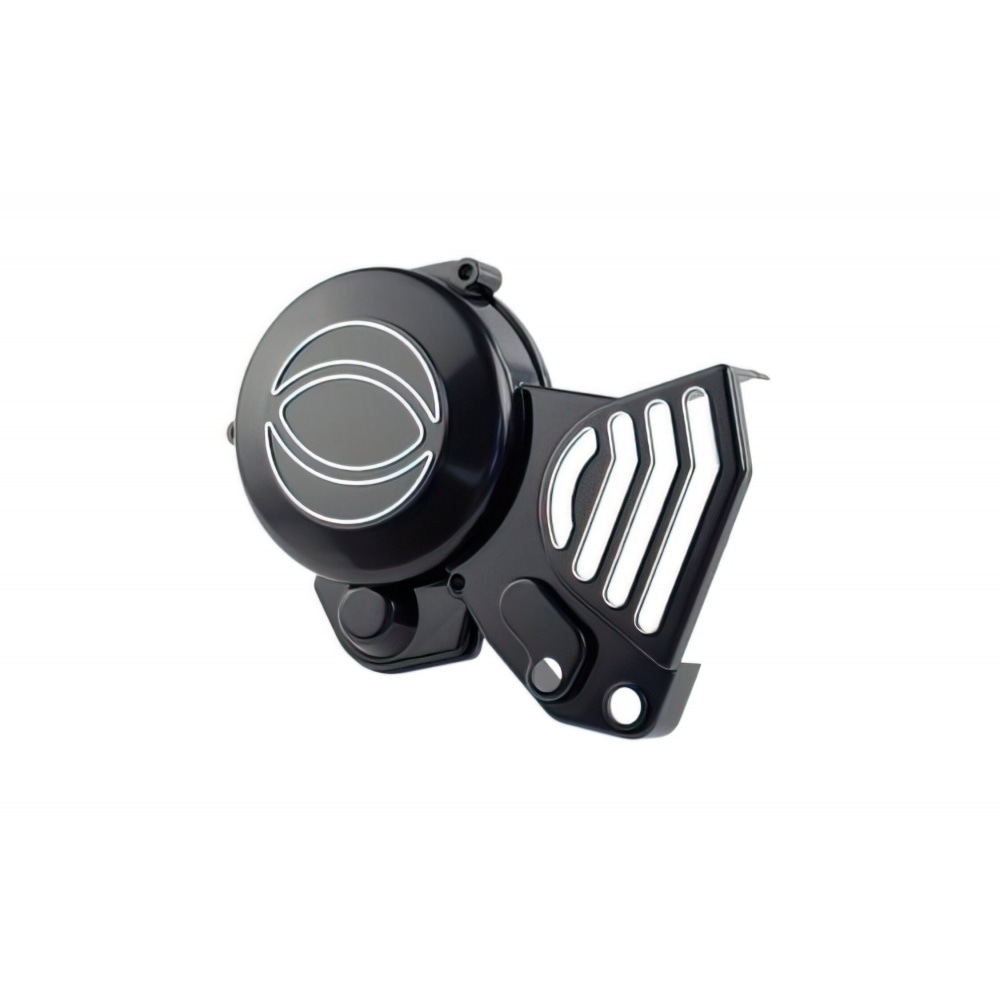 Stunning black Tun’R Ignition Cover with chrome trimmings, custom replacement for original cover, for Derbi Senda Euro 2 (EBE / EBS). It is made of plastic and is very similar to the OEM part. Suitable for Derbi Euro 2 (EBE050 / EBS050) engines.